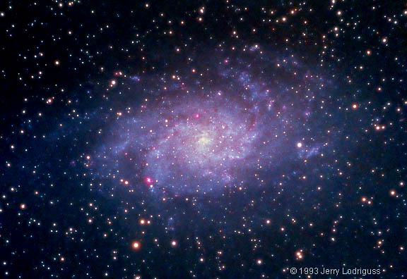 Галктика М33 является спутником Туманности Андромеды и расположена в созвездии Треугольника. Ее видимая звездная величина составляет 5,7.